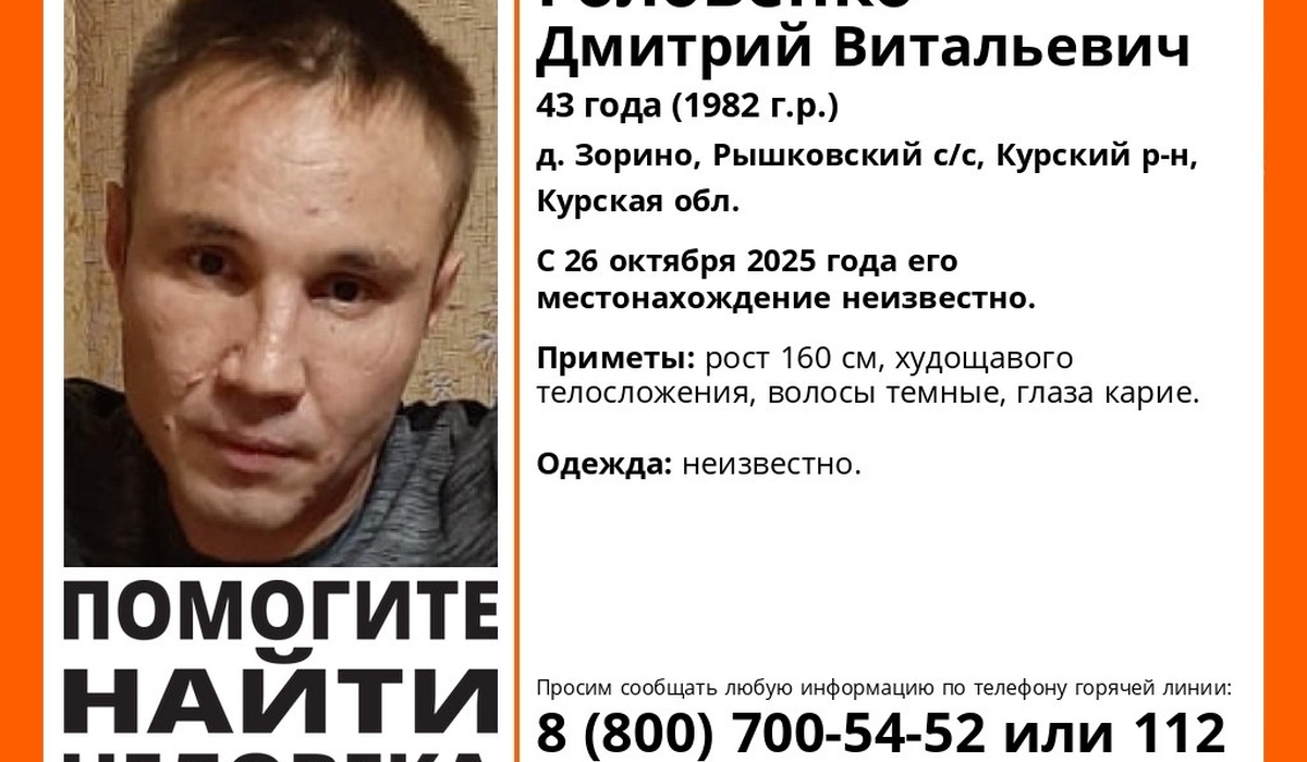 Курян, которые располагают сведениями о местонахождении Дмитрия Головенко, добровольцы просят позвонить по телефонам: 8-800-700-54-52 или 112