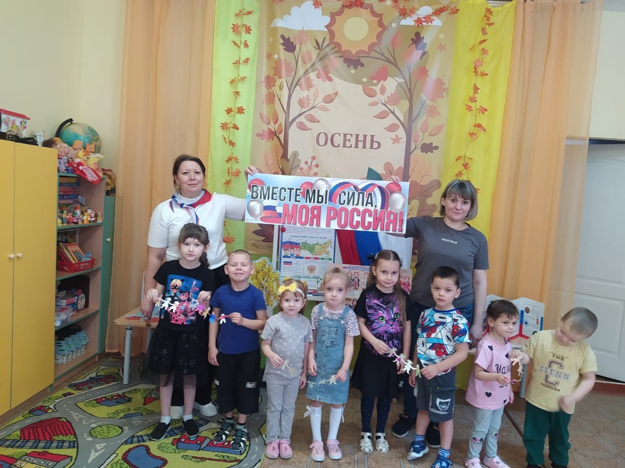 Дети закрепили знания о символике России, слушали гимн, сделали «Гирлянду дружбы», выполнили спортивные упражнения с флажками .