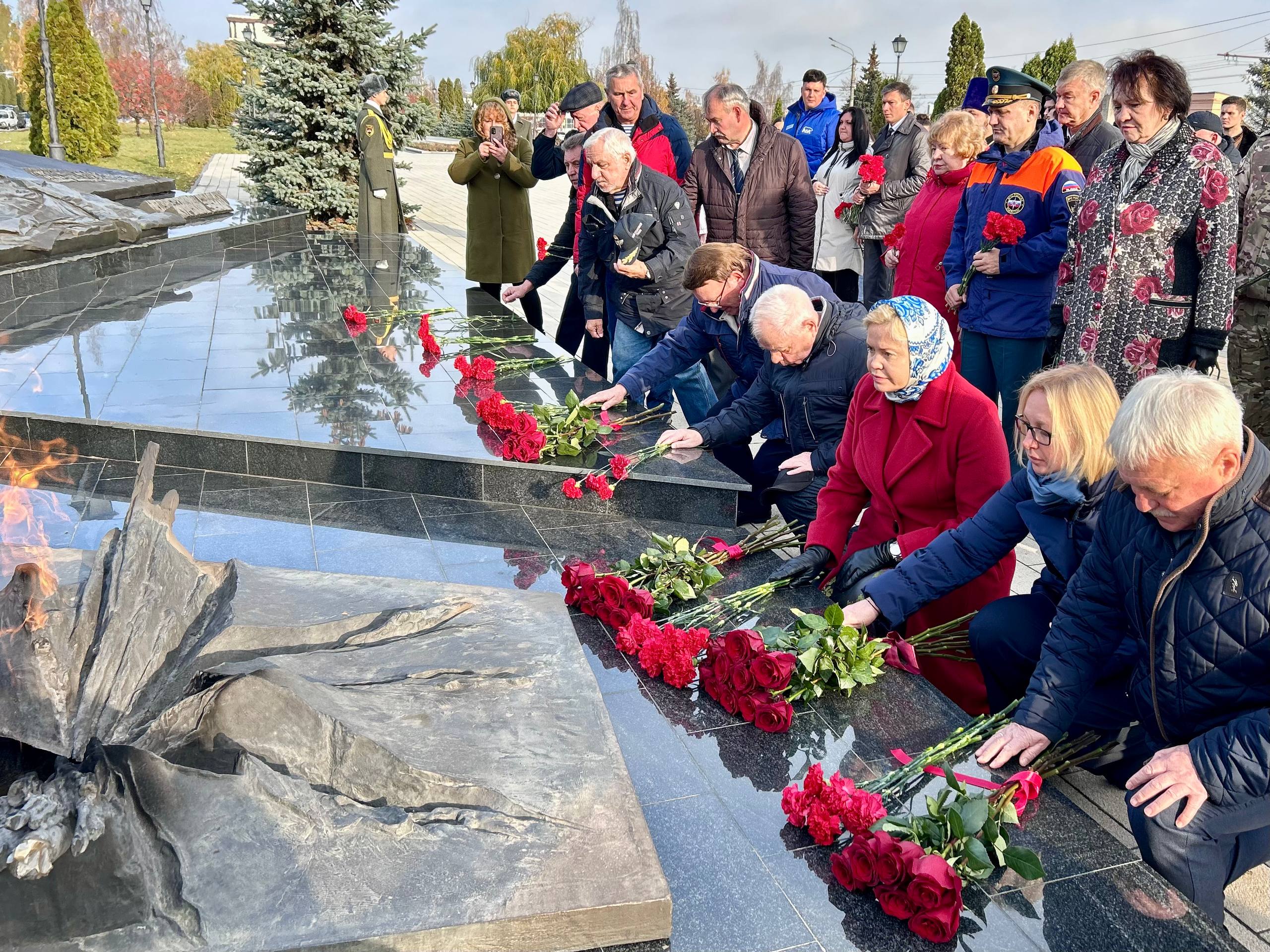 От жителей Курска и области к Вечному огню цветы возложили губернатор Александр Хинштейн, глава города Евгений Маслов, врио главного федерального инспектора по Курской области Артем Иванов, председатель Курской областной Думы Николай Жеребилов, а также депутаты Государственной Думы РФ, заместители губернатора Курской области, представители федеральных структур и силовых ведомств, политических партий, ветеранских организаций, национальных и религиозных общин.