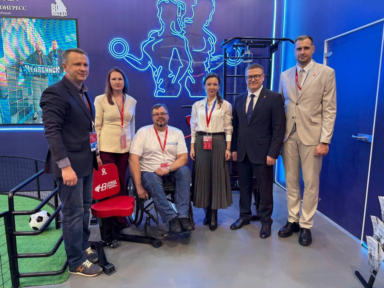 На выставке международного спортивного форума «Россия – спортивная держава» вместе с губернатором Челябинской области Алексеем Леонидовичем Текслером, коллегами-производителями компании IRON KING презентовали первый в России отечественный пневматический тренажер. Его разработали при содействии проекта нашей Комиссии по защите семьи «Новая высота», направленного на помощь людям с инвалидностью, ограниченными возможностями здоровья, желающих заниматься спортом.