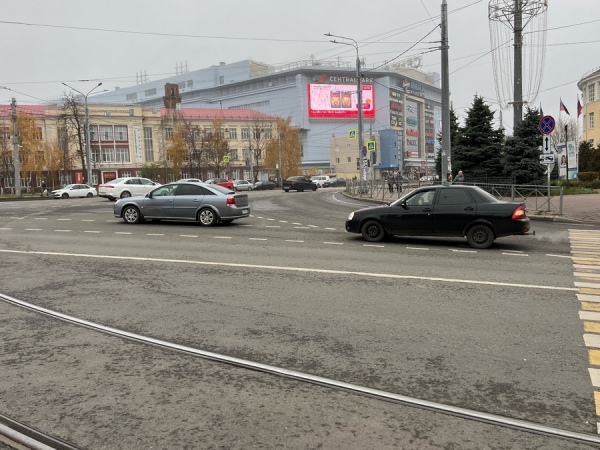 Легковые автомобили столкнулись днем на площади Перекальского в Курске.