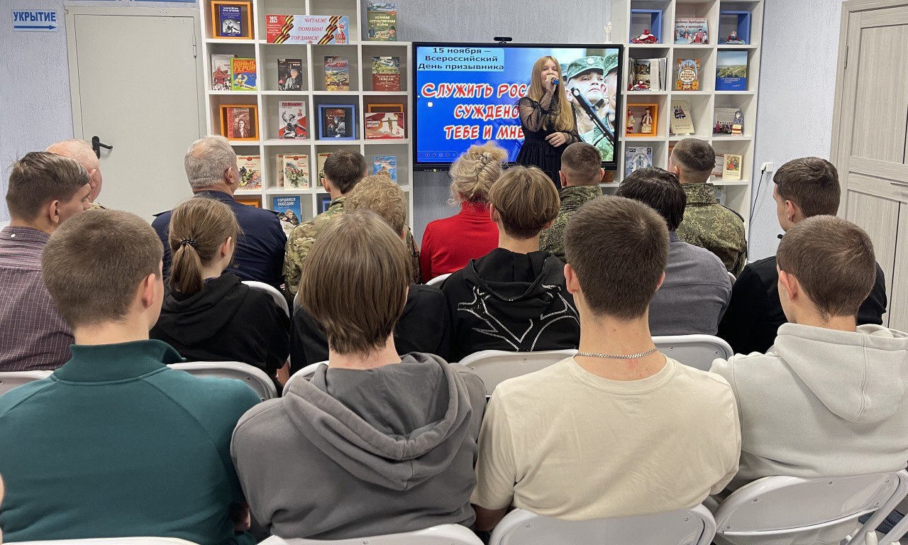 В преддверии Всероссийского дня призывника в Центральной городской детской библиотеке для студентов Курского монтажного техникума имени Героя России А.В. Лапшина прошла патриотическая программа «Служить России суждено тебе и мне».