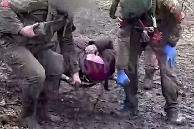 На кадрах показана эвакуация россиянки. Ее погрузили на носилки и посадили в вездеход. «Ну все, бабушка, поедем», — сказал один из бойцов перед отправкой.
