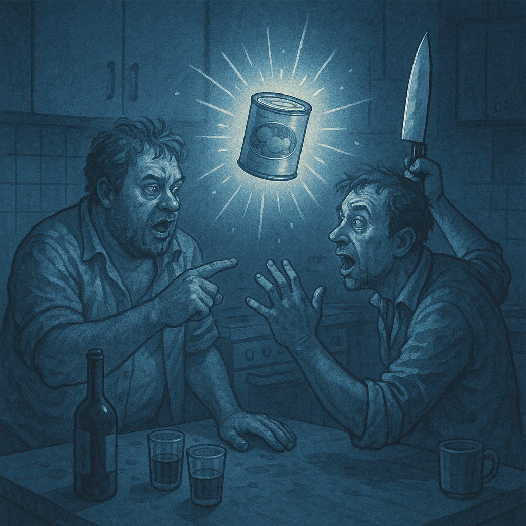 Два курянина поссорились во время пьяного застолья. Причина — хозяин дома не нашел в холодильнике банку тушенки. Подозрение пало на 38-летнего товарища.