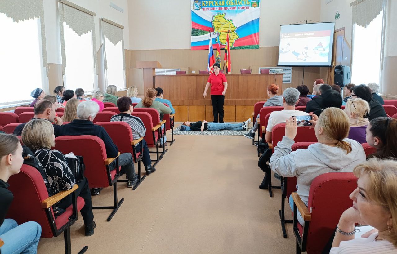 В Администрации Черемисиновского района состоялось мероприятие по отработке навыков оказания первой помощи пострадавшим в условиях чрезвычайной ситуации, в котором приняли участие работники культуры и образования.