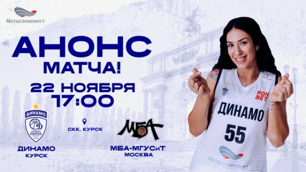 В субботу, 22 ноября курских болельщиков ждет важный матч женской баскетбольной премьер-лиги. «Динамо» (Курск) на своей площадке встречается с бронзовым призером сезона 2024/2025 — МБА-МГУСиТ из Москвы. Регулярный чемпионат продолжится после паузы, связанной с играми сборной России. Начало встречи с москвичками в СКК на улице Энгельса в 17:00.