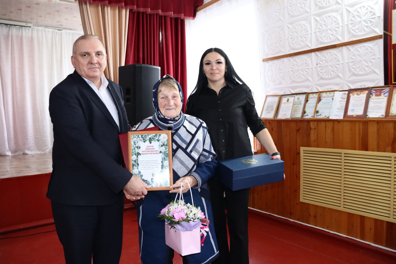 Вместе с Мариной Степановной Евдокимовой, главой сельсовета, вручил памятный подарок от Губернатора Курской области семье Домашевых Анатолия Ивановича и Евдокии Григорьевны