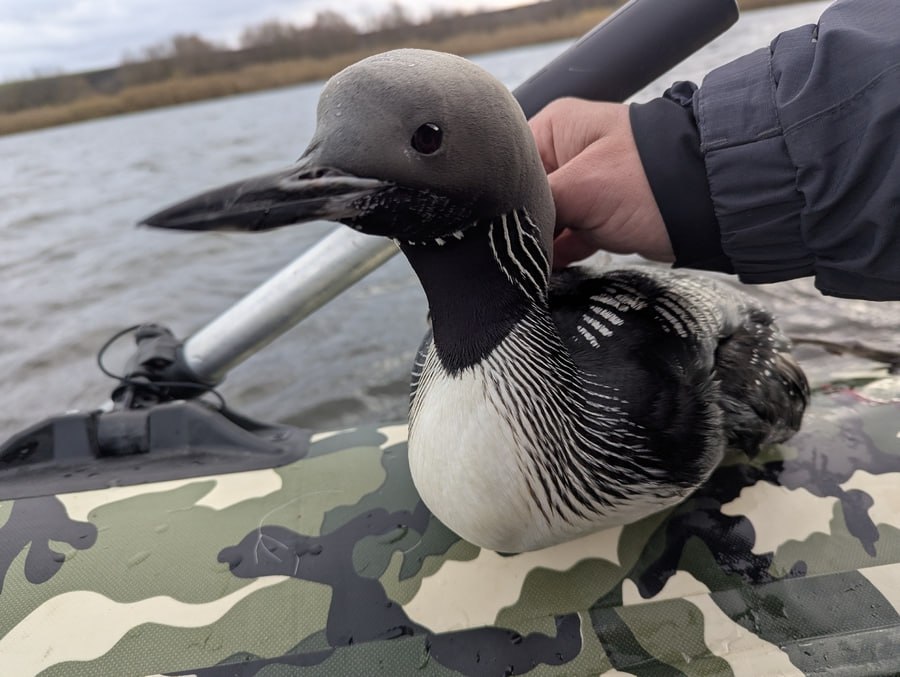 В Медвенском районе рыбак Денис Савельев спас чернозобую гагару, выпутав ее из браконьерских сетей. В процессе пернатая отчаянно сопротивлялась и даже покусала спасителя.