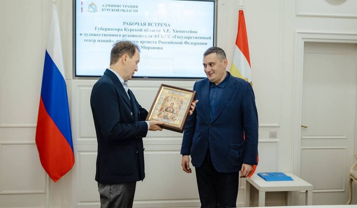 В Курске в рамках «Больших гастролей» прошла рабочая встреча губернатора Александра Хинштейна с художественным руководителем Театра наций Евгением Мироновым. Главной темой разговора стала программа поддержки и развития театральной жизни региона.