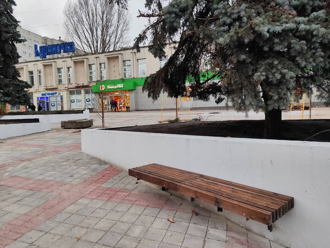 Благоустройство площади перед магазином «Куряночка» продолжается — уже видно, как она преображается: обновляются дорожки и высаживаются новые растения