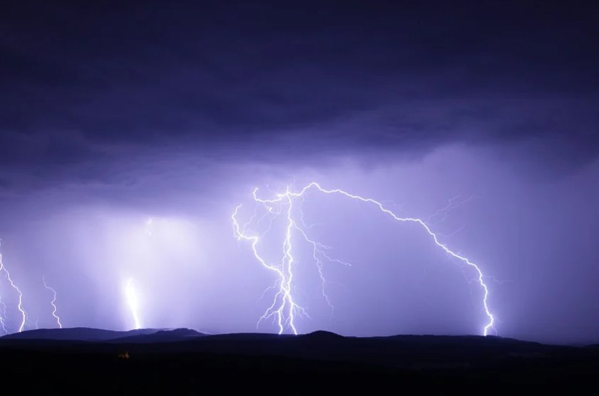 Примерно в половине девятого часа начался мощный ливень, сверкают молнии, гремит гром.
