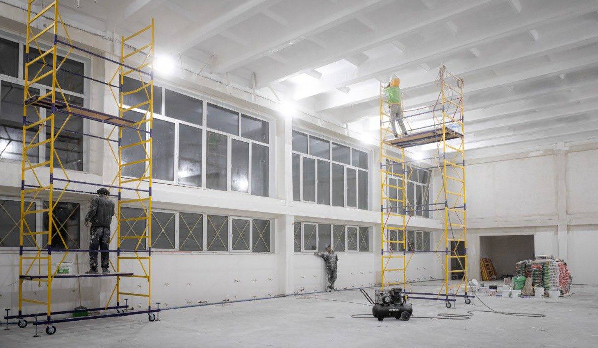 Работы по залу должны завершить до 10 декабря, а до 15 декабря - установить инвентарь: шведские стенки, сетку, кольца. В противном случае контракт с подрядчиком расторгнут досрочно.