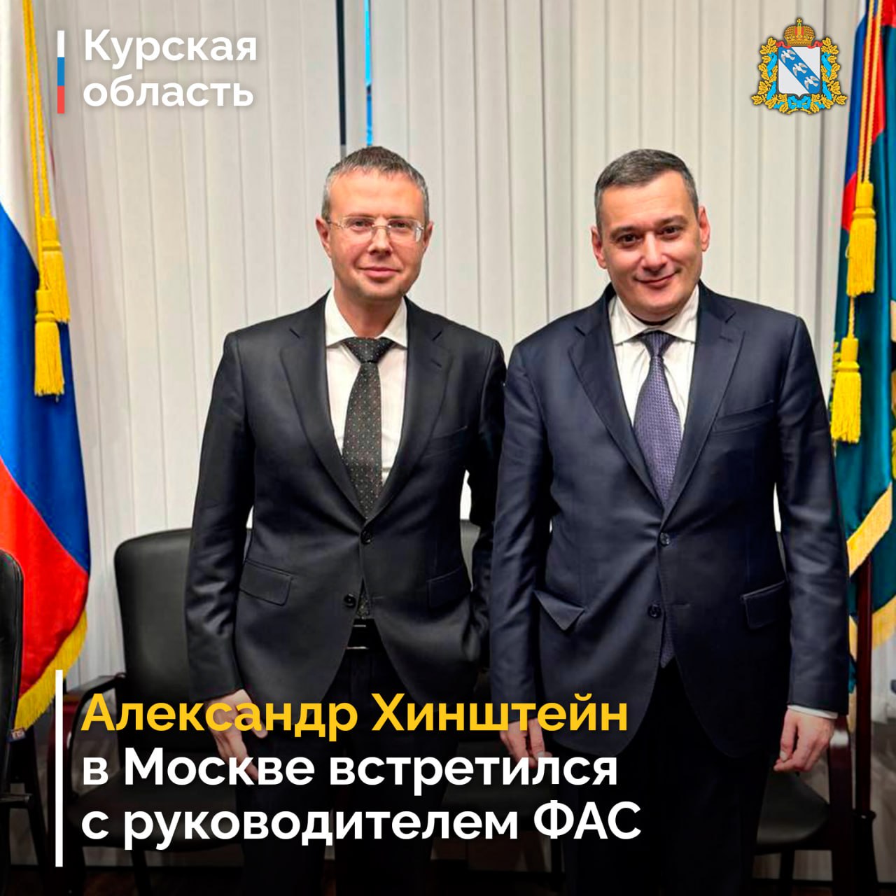 Губернатор Курской области Александр Хинштейн провёл рабочую встречу с руководителем Федеральной антимонопольной службы Максимом Шаскольским: обсудили контроль за ценами в регионе, а также работу регулятора по выявлению и пресечению нечестной конкуренции и регулированию тарифов.