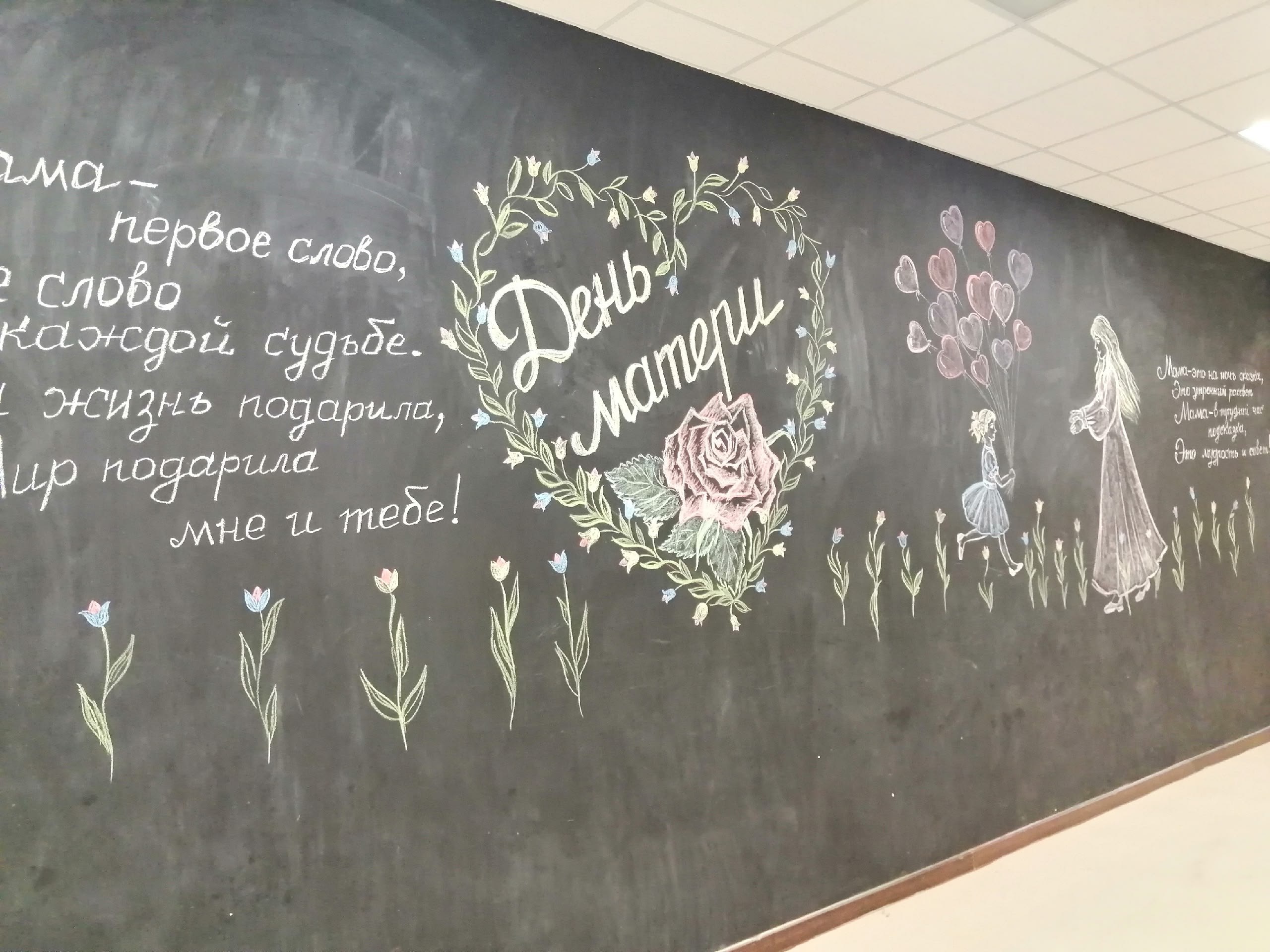 Не оставили без внимания своих мам и обучающиеся СОШ 4. Ребята ответственно подготовились к этому замечательному празднику и нарисовали портреты любимых мам. Учителя изобразительного искусства Плохих Н.В. и Тимофеева И.В. оформили грифельную стену и выставку "Мамина улыбка".