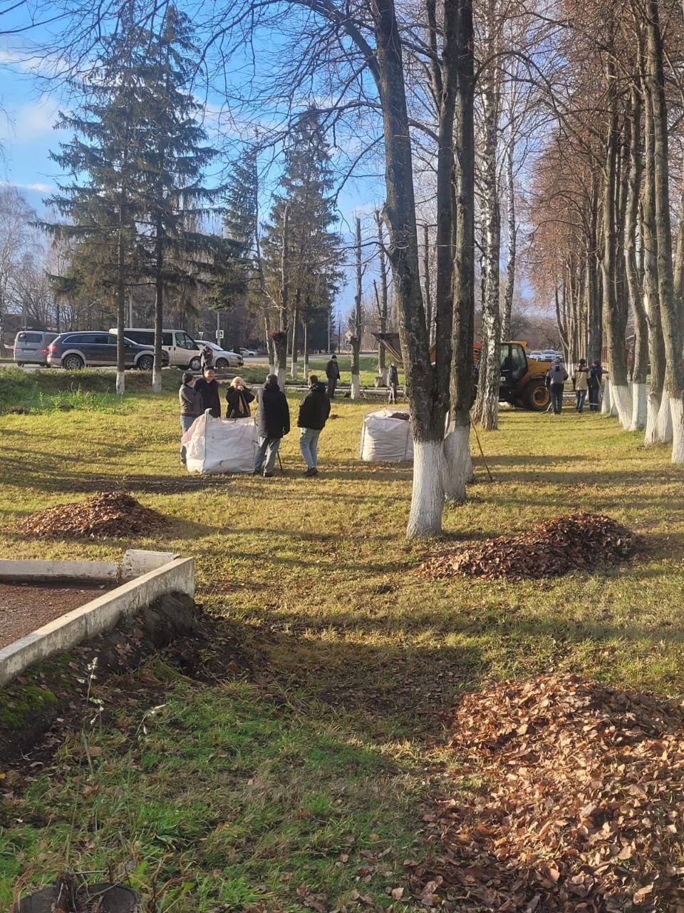Общими усилиями подмели площадь перед административным зданием и убрали опавшую листву.