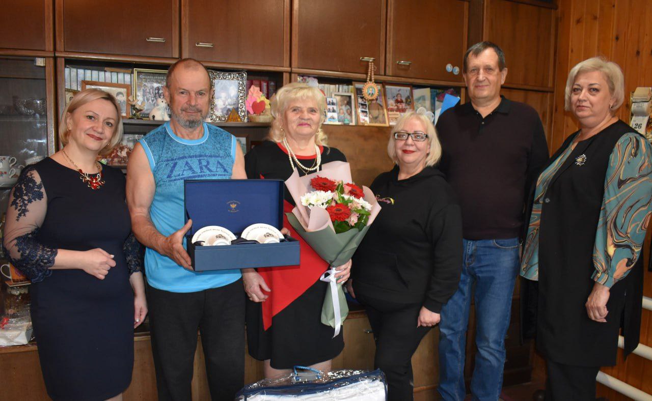 С удовольствием поздравил семейную пару с этим замечательным событием и передал поздравительную открытку от Губернатора Курской области Александра Хинштейна и символический подарок - чайные пары из императорского фарфора.