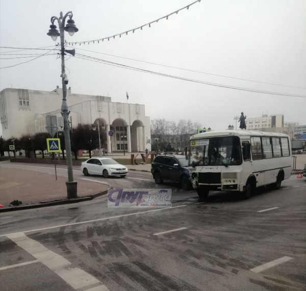 На главной городской магистрали столкнулись рейсовый автобус ПАЗ, следовавший по маршруту 12Г по выделенной полосе в сторону Красной площади, и выезжавший со второстепенной дороги у ТЦ «Пушкинский» автомобиль.