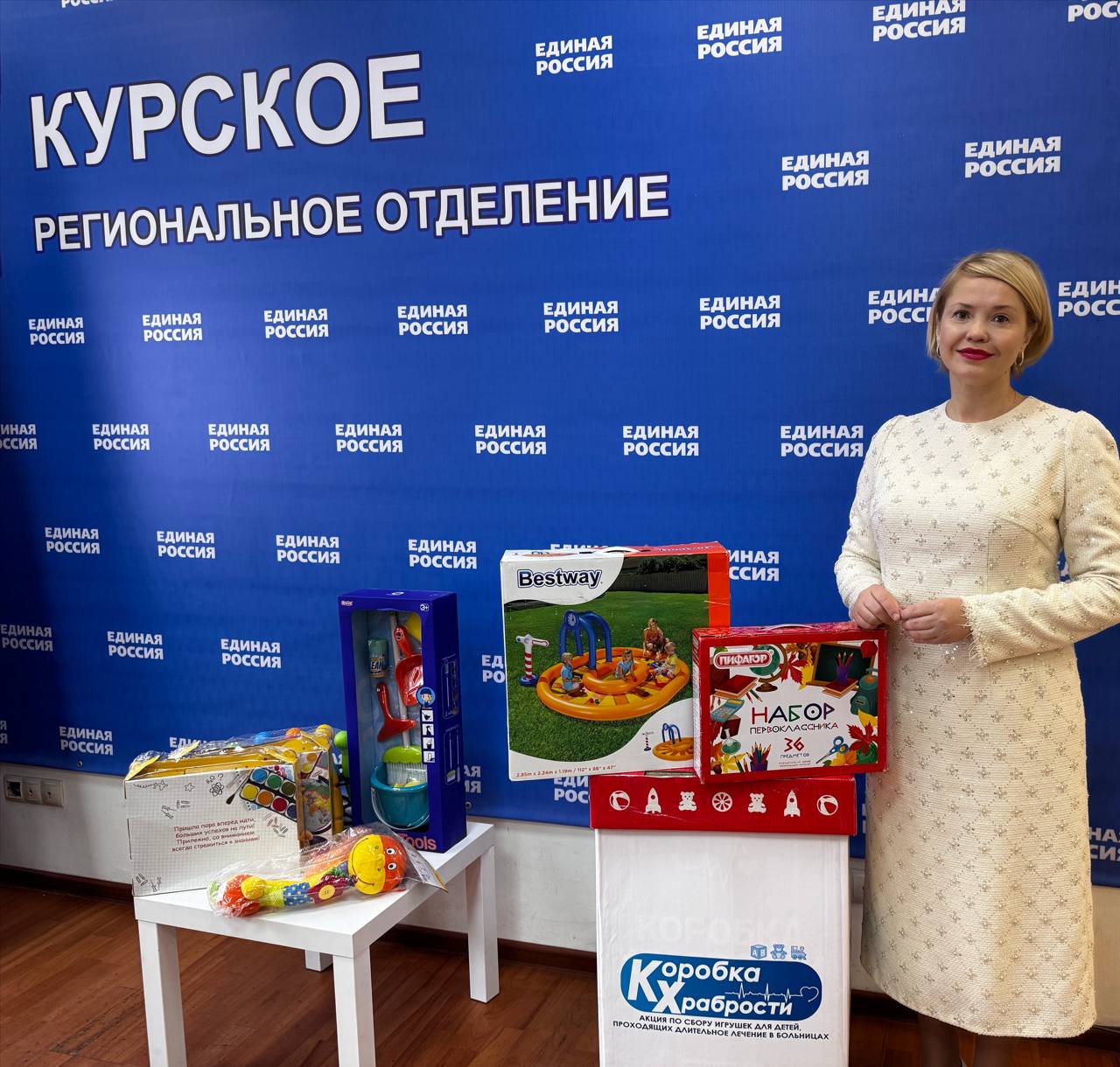 В День рождения принято дарить подарки, поэтому я с радостью принесла детские игрушки, чтобы наполнить «коробку храбрости»! Много лет участвую в этой доброй инициативе партии- особая радость подарить внимание и заботу юным землякам, кто сейчас сражается за свое здоровье.