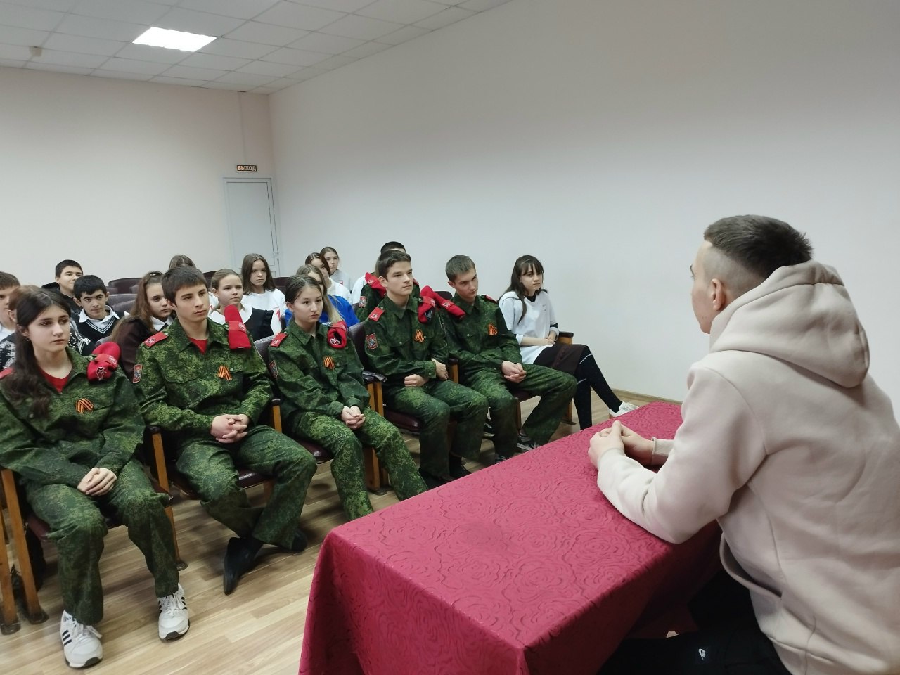 В канун Дня Неизвестного Солдата в Покровской школе прошла невероятно душевная и значимая классная встреча: учащиеся школы, участники Движения Первых и члены юнармейского отряда смогли пообщаться с выпускником школы, который сейчас является участником специальной военной операции!