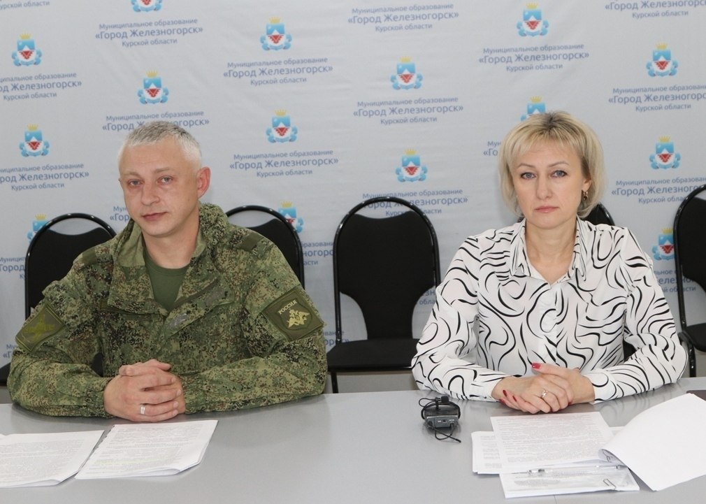На вопросы представителей городских СМИ ответили инструктор пункта отбора службы по контракту города Курска сержант Александр Селезнев и начальник УСЗОЗН города Железногорска Лариса Кравченко.