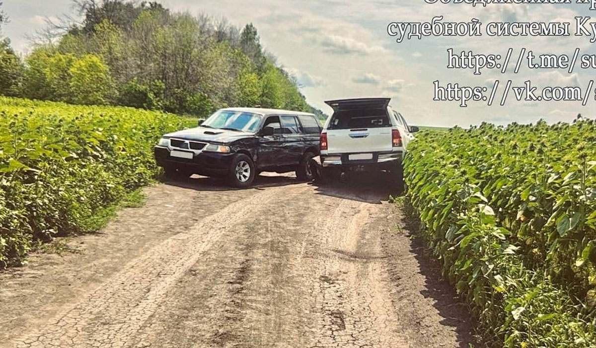 Утром 14 июля 2025 года недалеко от села Кривец Мантуровского района Курской области два внедорожника - черный Mitsubishi Pajero и белый Toyota Hilux - столкнулись на грунтовой дороге среди подсолнечных полей. Водители не смогли разъехаться, в результате оба автомобиля получили механические повреждения.