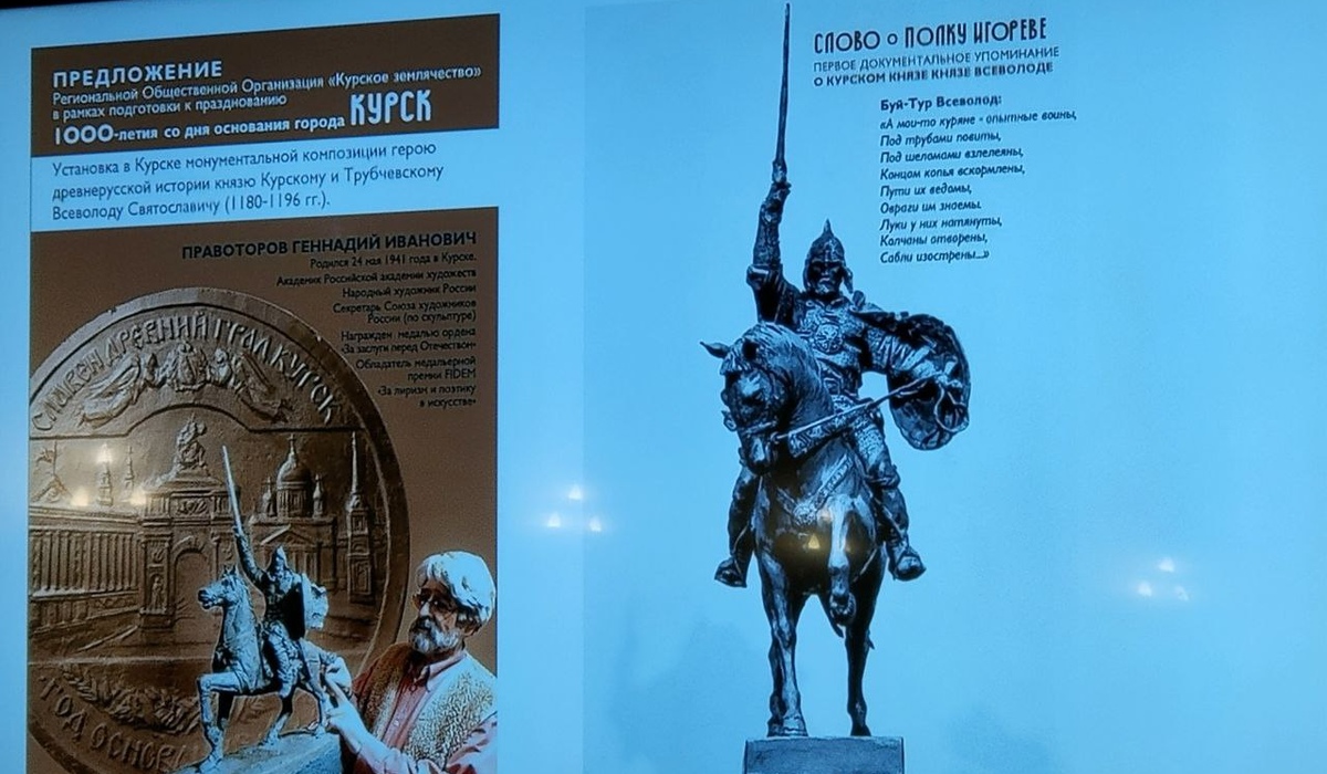 Курское землячество предложило проект памятника одному из героев «Слова о полку Игореве» –Всеволоду Святославич по прозванию Буй-тур (1155 — 1196). Как свидетельствуют летописи, он был князем Трубчевским и Курским и защищал рубежи.