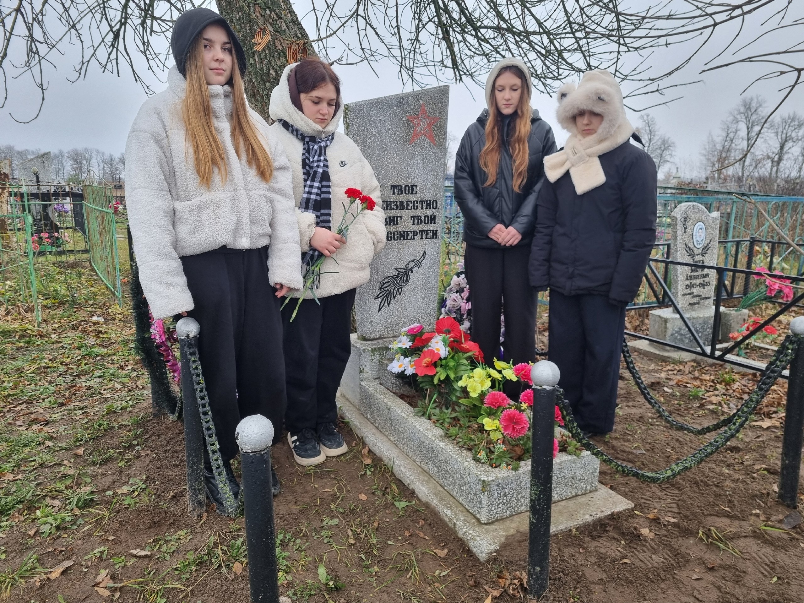 Накануне торжественной даты - Дня Неизвестного солдата - активисты первичного отделения Движения Первых МКОУ "Большедолженковская СОШ" совместно с советником директора по воспитательной работе Бухтияровой М.В. возложили цветы на могилу Неизвестного солдата в деревне Липина Октябрьского района.
