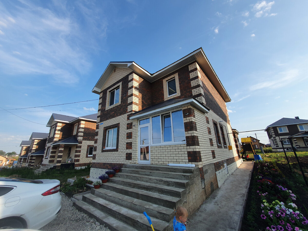 Перед домом расположено широкое крыльцо, которое нуждается в отделке. Непосредственно перед ним планируется разместить контейнерный сад и клумбы, так как эта территория часто тенистая. С правой стороны дома сейчас находится длинная клумба, где вместо однолетников в будущем планируется высадка кустарников, а слева выделено место для будущего гаража.