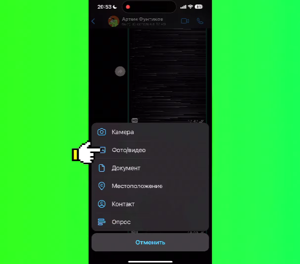 После спуска затвора появятся два значка: галочка, которая означает "Готово" — нажмите на неё, чтобы отправить, или крестик, если нужно переснять. Как только галочка выбрана, фото автоматически отправляется, и вы увидите его в чате с пометкой "Отправляется".