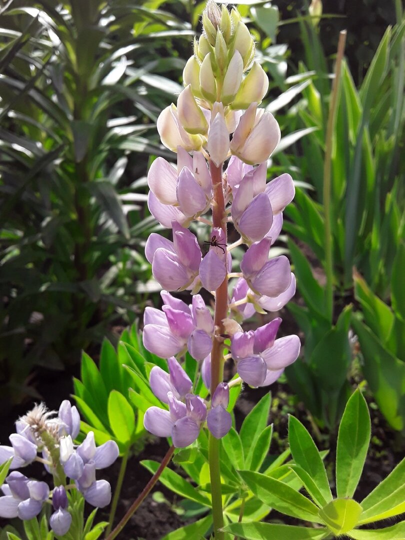 Соседние цветники в начале лета покрываются цветами, предоставляя радость глазу и подчеркивая красоту ландшафта. Синий цвет люпинов всегда вызывает восхищение, особенно когда они цветут в окружении белых ромашек. Из всех многолетников именно люпины располагают к себе: их формы, колосовидные соцветия и нарядные листья добавляют шарма в любой сад.