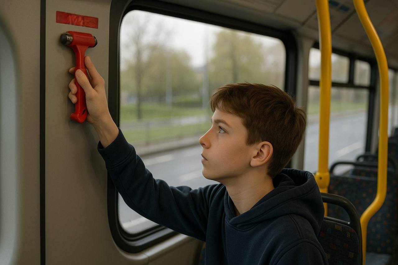 Центр транспортных услуг напомнил пассажирам о соблюдении безопасности в автобусах. Аварийные молотки пытаются воровать подростки, что может привести к ДТП:
