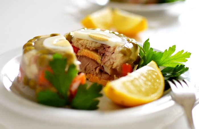 Теперь знатоки заливного рекомендуют переворачивать готовое блюдо перед подачей, чтобы удивить ваших гостей невероятным оформлением, которое будет приятно не только глазу, но и вкусу. В качестве дополнения подайте горчицу или хрен — это станет прекрасным акцентом к блюду.
