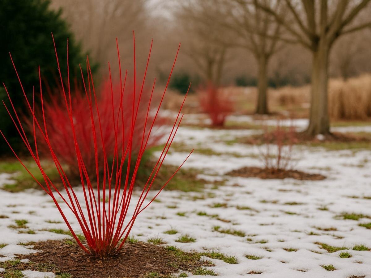 Тонкие стебли растения могут иметь оттенки от ярко-красного до золотистого, в зависимости от сорта. В окружении хвойников и среди зимних кустарников они создают эффектное цветное пятно. Это идеальный выбор для тех, кто ищет способы добавить яркости в зимний ландшафт.