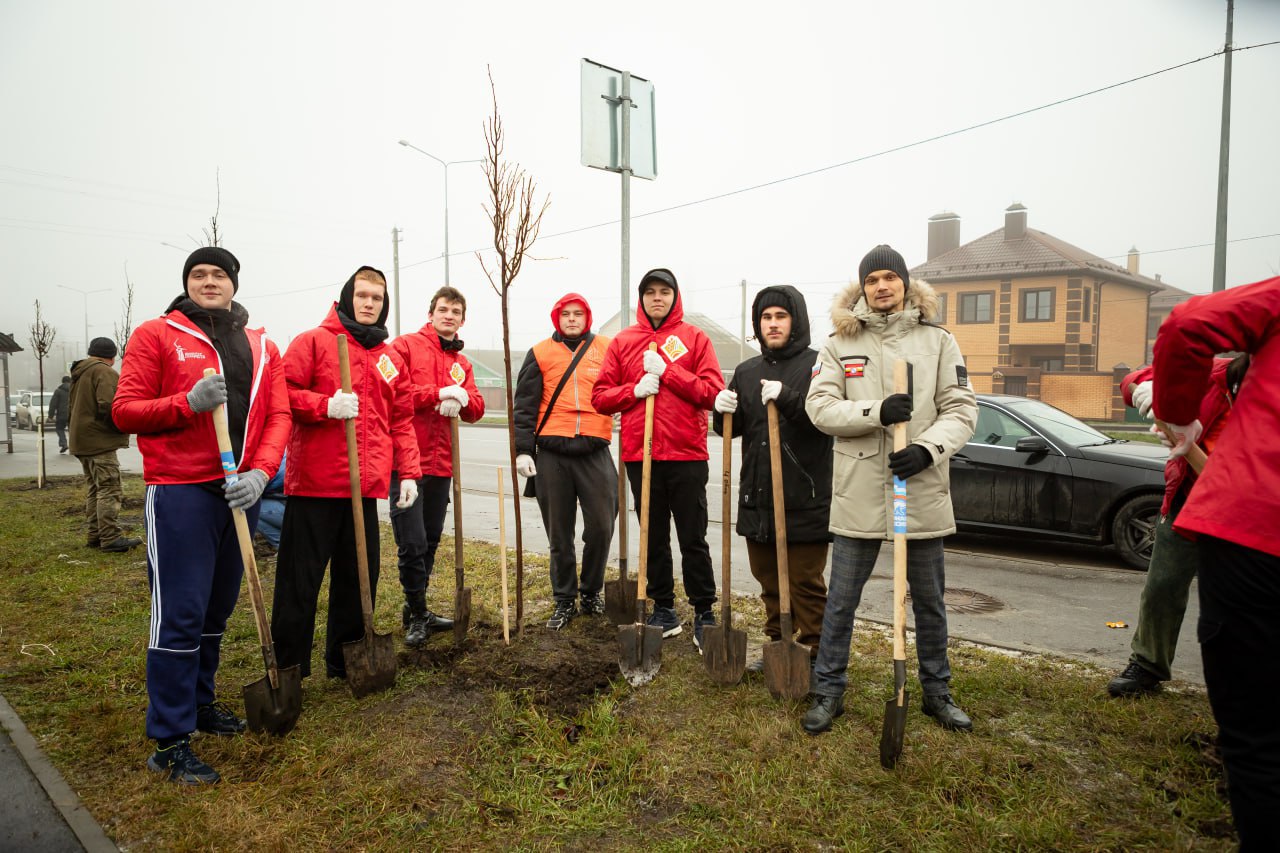 На улице Бойцов 9-й дивизии высаживают липы. Молодые деревья городу передало министерство природных ресурсов Курской области благодаря поддержке губернатора Александра Хинштейна.