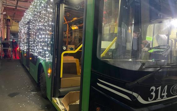 В Курске на линии появились несколько единиц электротранспорта, оформленных к Новому году. Помимо трамвая «Ветерок», на маршруты №2 и №9 вышел украшенный троллейбус, а на маршрут №7Э — электробус.