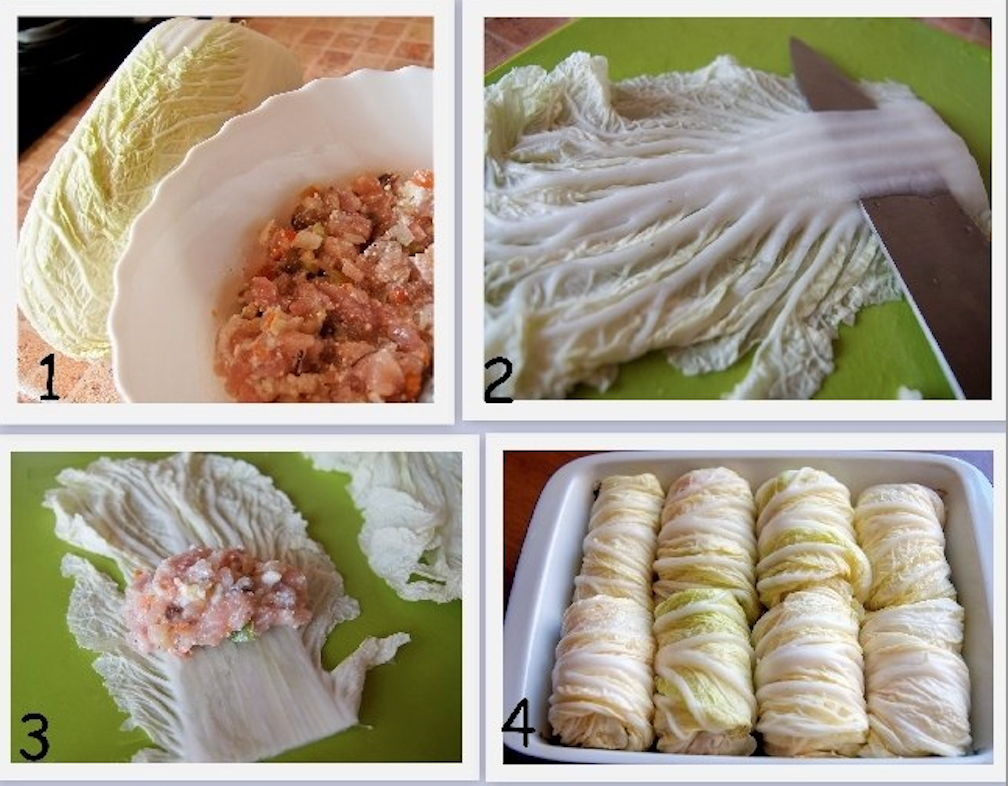 4. Заполните листья капусты начинкой и аккуратно сверните голубцы.