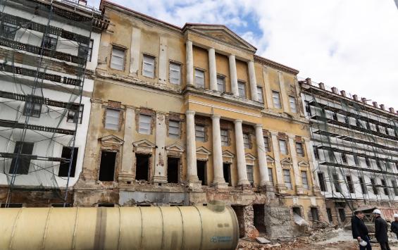 Заместитель губернатора Курской области Артем Демидов проверил ход работ в здании бывшей мужской классической гимназии в Курске. По его словам, с учетом нарастающих темпов реставрации встречи со строителями и подрядчиком решено проводить регулярно.