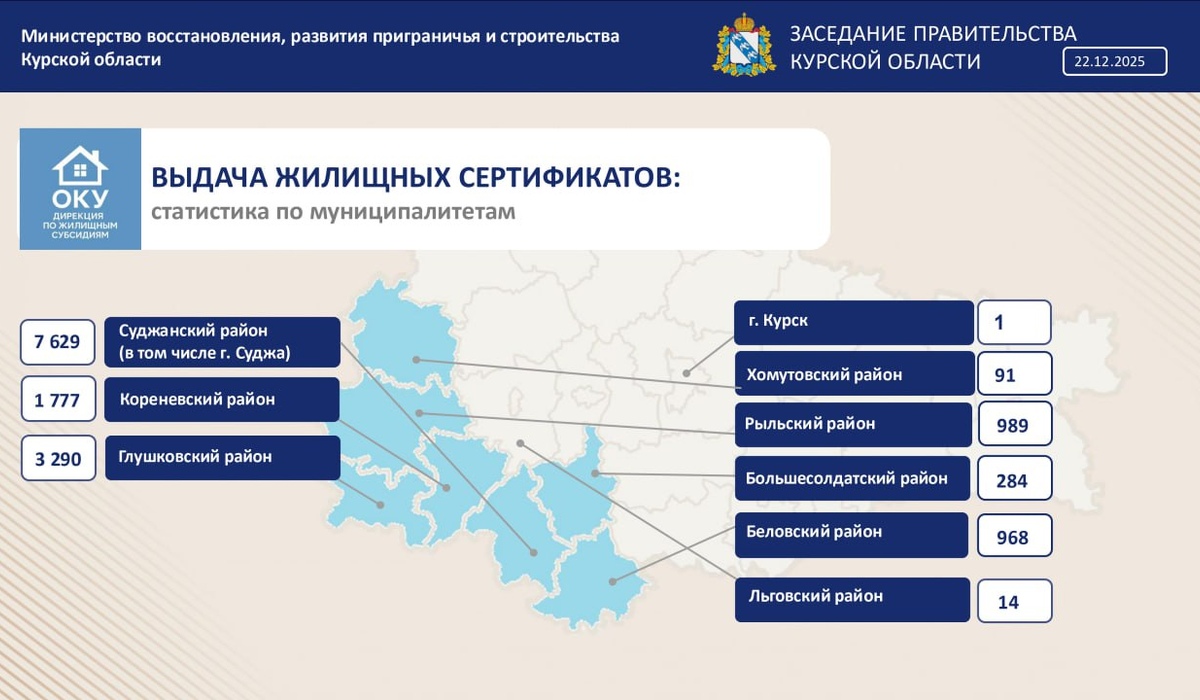 С 2023 по 2025 год было рассмотрено более 17 тысяч заявлений. Жилищными сертификатами обеспечено 15 039 семей на общую сумму 93,2 млрд рублей.