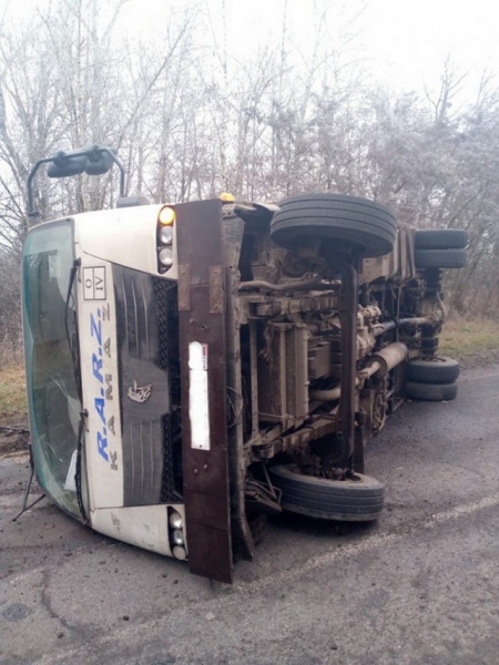 По прибытии на место на обочине дороги обнаружен опрокинутый грузовой автомобиль «КамАЗ». По предварительной информации, водитель грузовика не справился с управлением и допустил съезд с дороги на обочину.