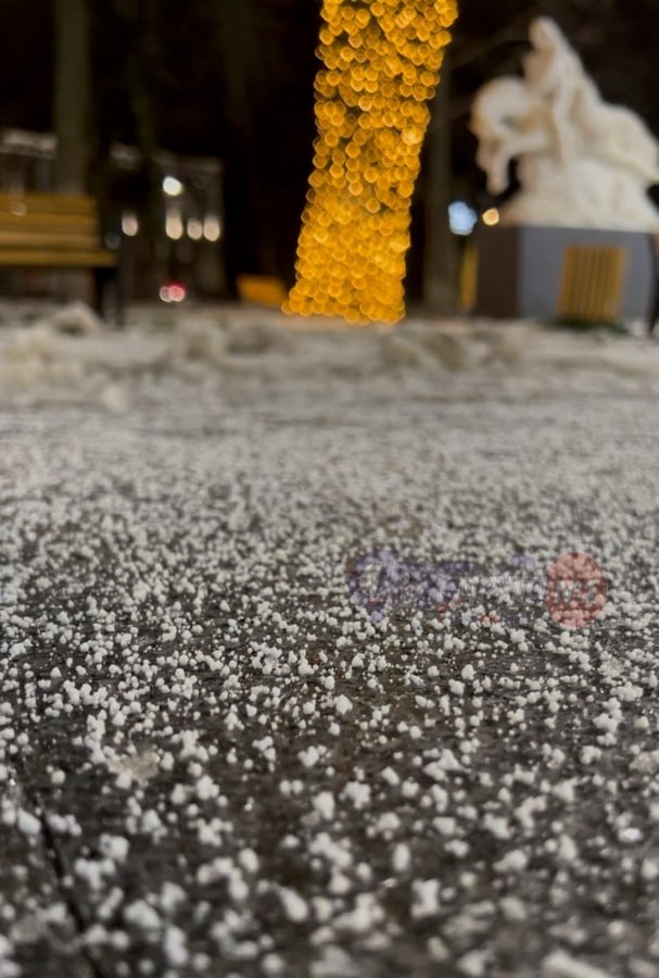 Необычный снег, похожий на пенопласт, выпал ночью в Курске.