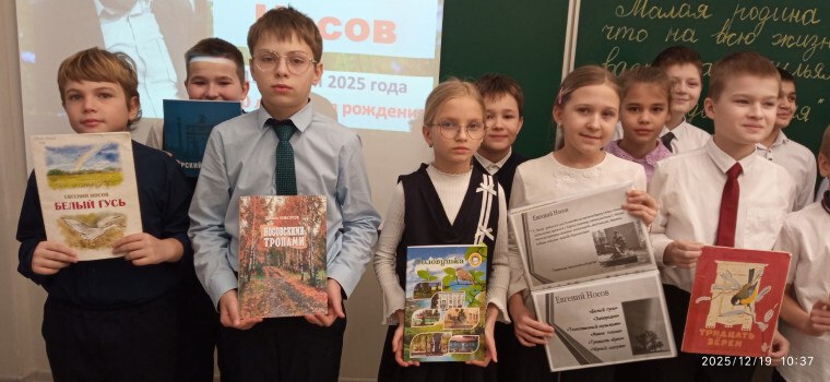 Литературное путешествие «По страницам книг Евгения Носова», посвящённое 100-летию со дня рождения писателя, в 4Б классе Гимназии №2 (классный руководитель Г.А.Пашкова) провела библиотекарь Центральной детской библиотеки Елена Назарьева.