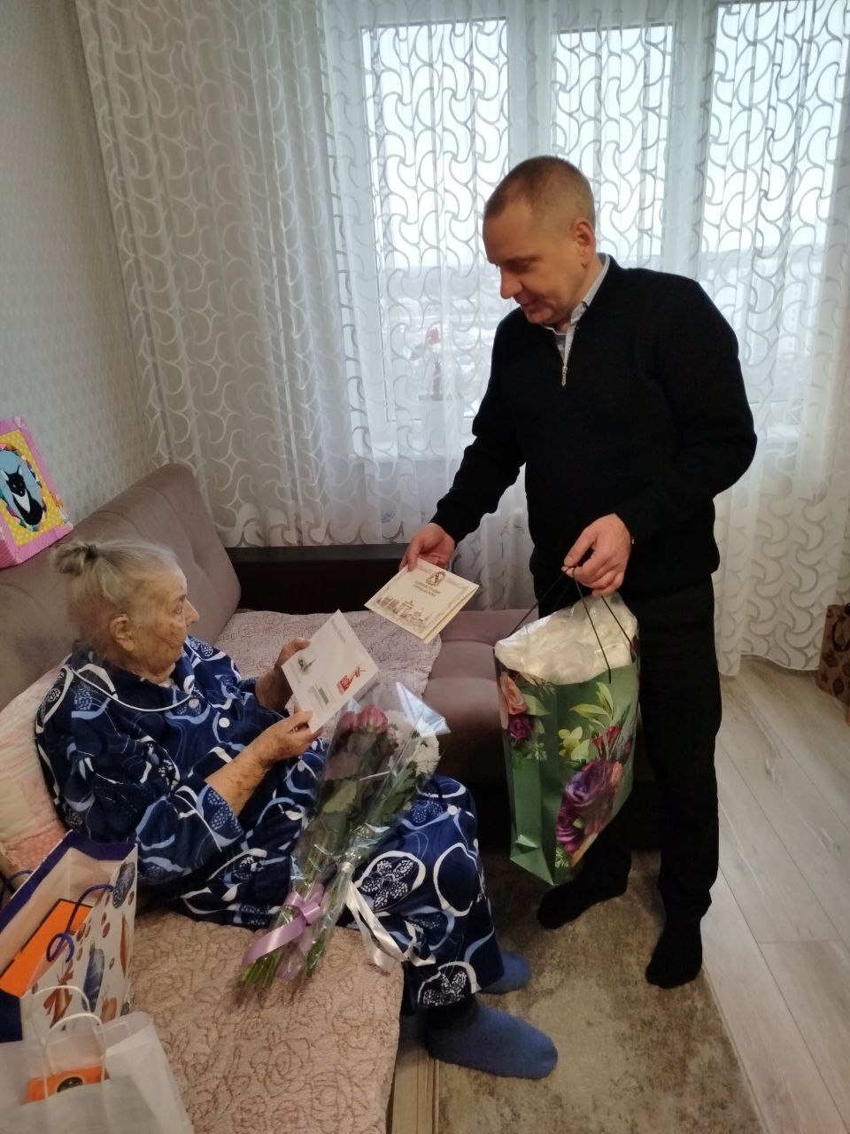 Председатель комитета социальной защиты Курска Сергей Брежнев поздравил Елену Васильевну Казакову с юбилеем