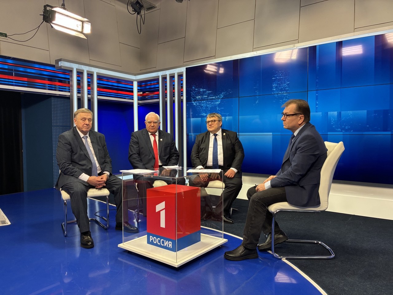 Председатель Курской областной Думы Николай Жеребилов вместе со своими заместителями Александром Кичигиным и Константином Комковым приняли участие в записи интервью для телеканалов "Россия 1" и "Россия 24".
