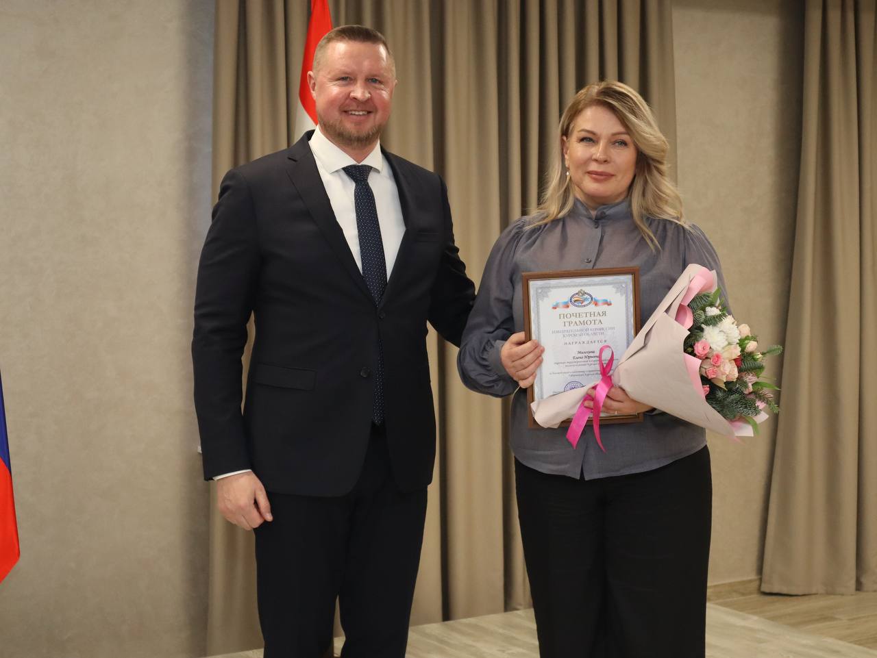 Губернатор Курской области Александр Хинштейн, Председатель областного избиркома Евгений Черкашин и заместитель председателя областной Думы Константин Комков вручили государственные и региональные награды, а также благодарственные письма наиболее отличившимся организаторам выборов.