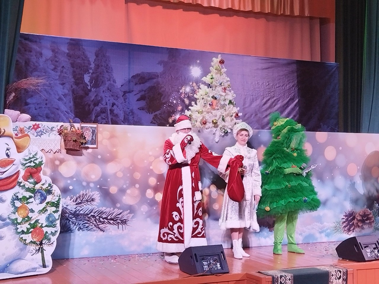Работники культуры показали увлекательный кукольный спектакль "Новогодняя тайна". Также в программе были развлекательные игры и конкурсы. Завершилось мероприятие вручением сладких подарков от Деда Мороза и Снегурочки.