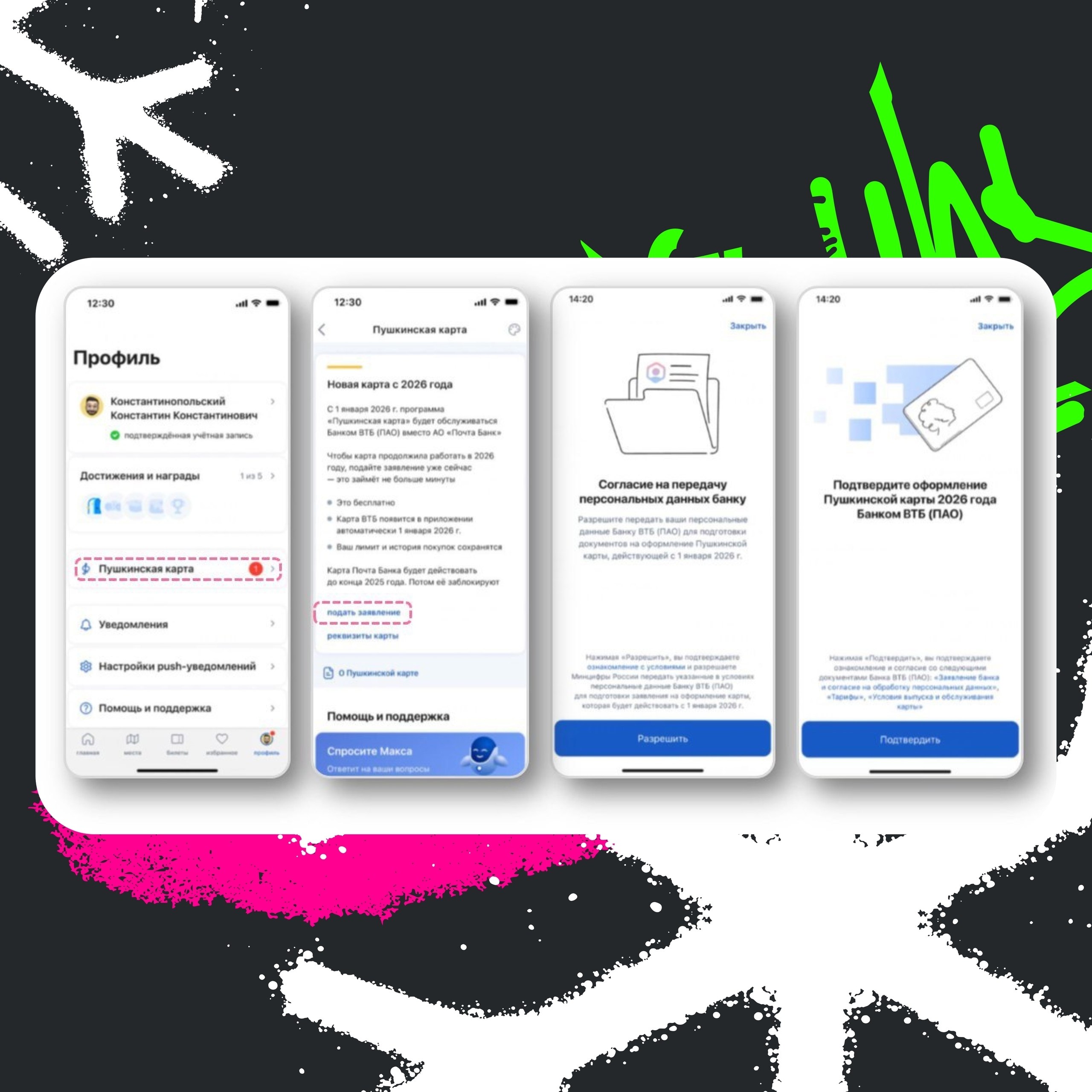 Маленькая шпаргалка для держателей Пушкинской карты, чтобы вы точно успели подать заявление на выпуск Пушки в ВТБ, и в следующем году сохранилась возможность ходить по ней в кино, театр и музей