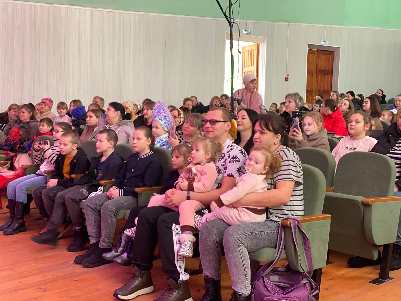 Артисты РДК с любовью подготовили новогоднюю сказку «Тайна снежной избушки». Завороженные взгляды и радостные улыбки детворы свидетельствуют о том, что представление пришлось по душе маленьким зрителям. По завершении сказочного действа, по доброй традиции, ребят ждут сладкие новогодние подарки.