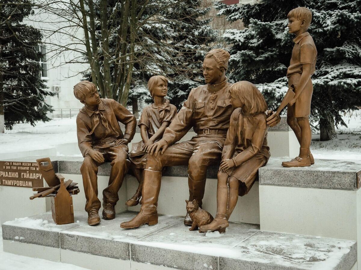 В Курске на площади перед молодёжным центром «Гелиос» открыли скульптурную композицию, посвящённую писателю Аркадию Гайдару и героям его повести — тимуровцам. Торжественное событие приурочено к 85-летию выхода на экраны фильма «Тимур и его команда».