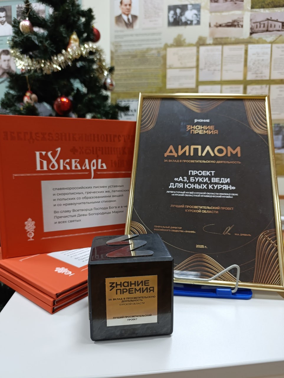 Победителем стал просветительский проект «Аз, буки, веди для юных курян», посвящённый наследию уроженца Курска Кариона Истомина.Курский литературный музей стал лауреатом региональной премии «Знание.Премия», которая в этом году впервые вручалась во всех субъектах страны. Награду учреждению принёс просветительский проект «Аз, буки, веди для юных курян».