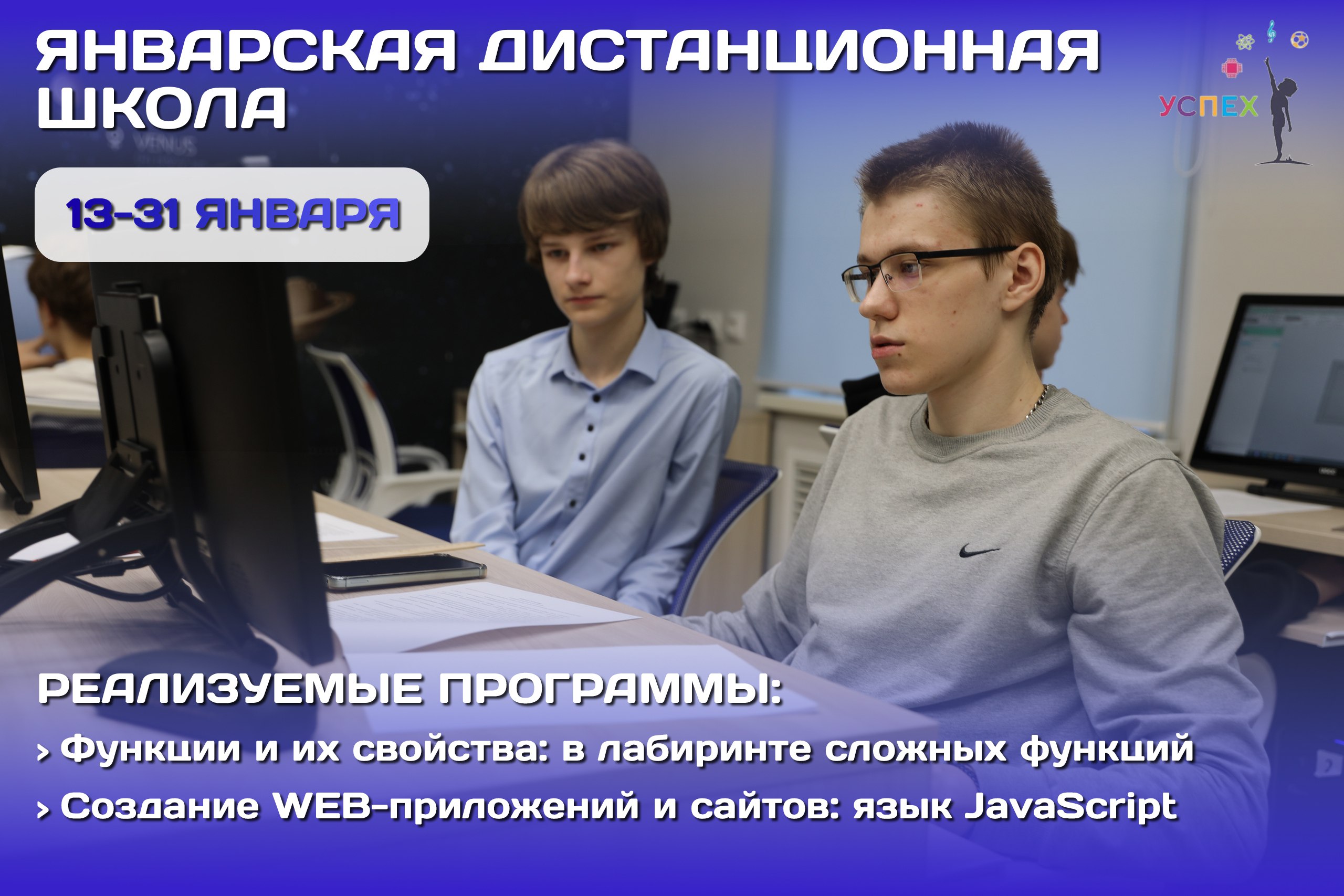 С 13 по 31 января в Региональном центре выявления и поддержки одаренных детей «Успех» пройдут занятия по программам дополнительного образования по направлению «наука» в рамках январской дистанционной школы. К участию приглашаются обучающиеся 6-11 классов.